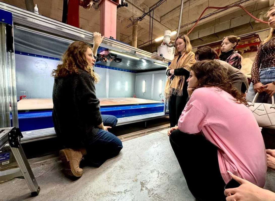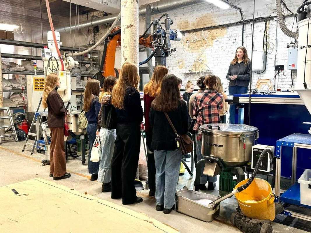 В рамках экскурсии студентам показали полный цикл создания изделий — от идеи до создания готовой продукции на крупноформатных 3D принтерах. Будущие дизайнеры познакомились с современным оборудованием и материалами, узнали, как работает процесс экструзии, какие технологии применяются для создания мебели из вторичного пластика.