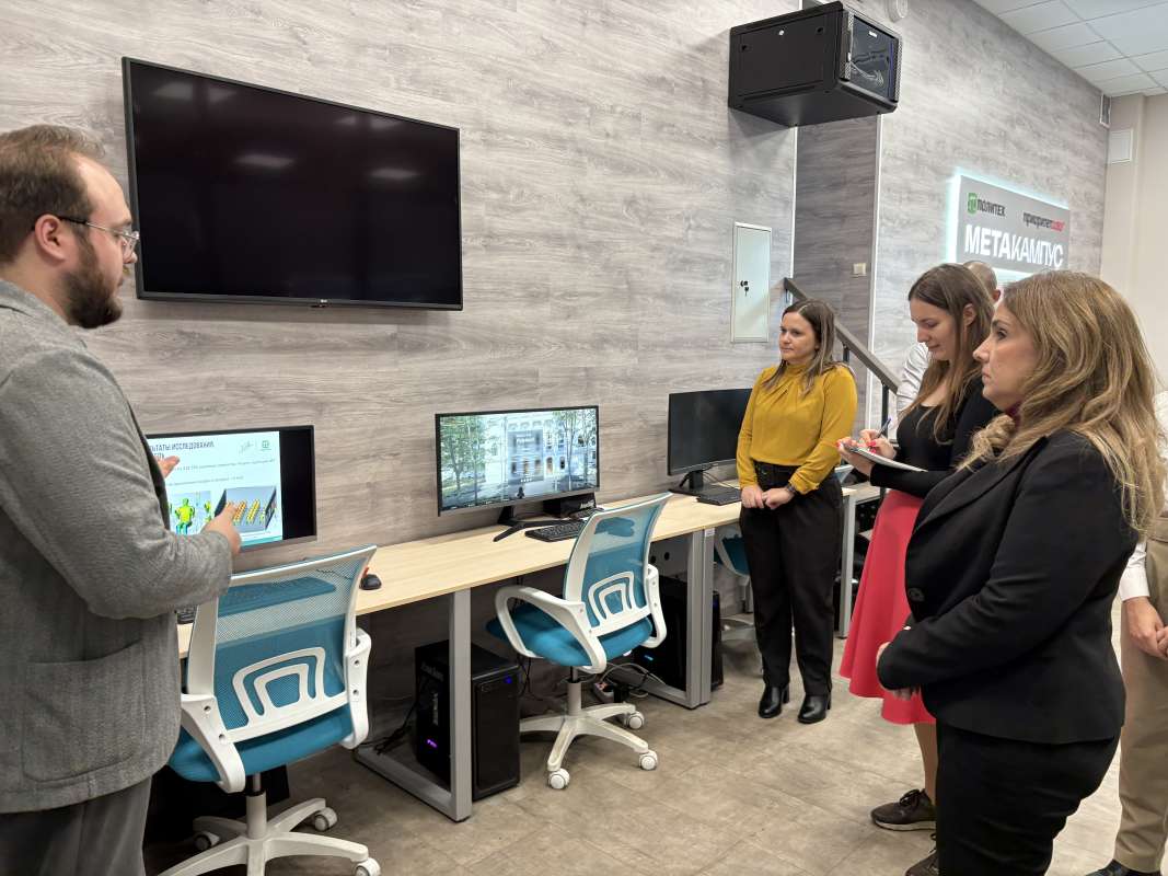 В ходе визита в Инженерно-строительный институт гости ознакомились с научно-образовательным проектом «МетаКампус Политех», реализуемым на базе института. Егор Мелехин представил концепцию цифрового двойника университетского кампуса, разрабатываемого студентами и преподавателями ИСИ, и продемонстрировал функционал цифровой платформы, обеспечивающей комплексное управление имущественным комплексом университета — от бронирования аудиторий и анализа загрузки пространств до анализа функционального назначения площадей. Директор Инженерно-строительного института Марина Петроченко рассказала об организационной структуре, ключевых научных и образовательных направлениях института, а также об истории и перспективах сотрудничества между ИСИ и CUJAE.
