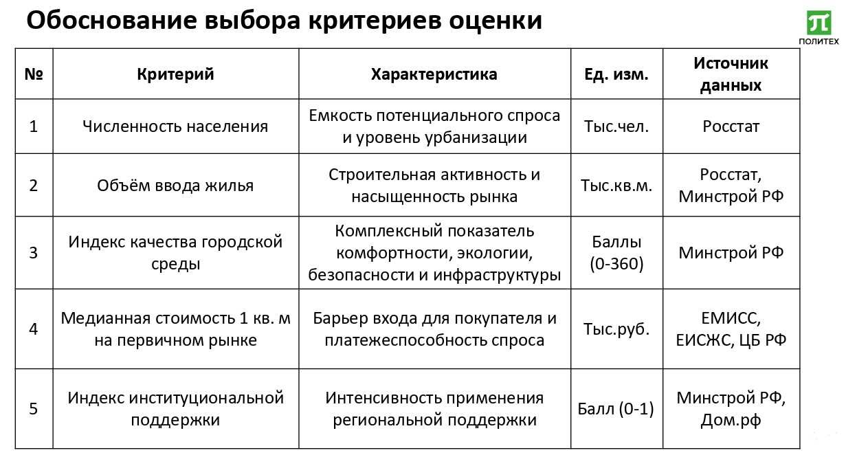 Модель интегрирует разнородные, но взаимосвязанные факторы: экономические, социально-демографические, институциональные, а также инфраструктурные и климатические ограничения, характерные для конкретной территории. Это позволяет на основе открытых данных объективно ранжировать регионы по их привлекательности для девелоперов и оперативно принимать стратегические решения о территориальной экспансии. Апробация методики проведена на 4 регионах РФ.