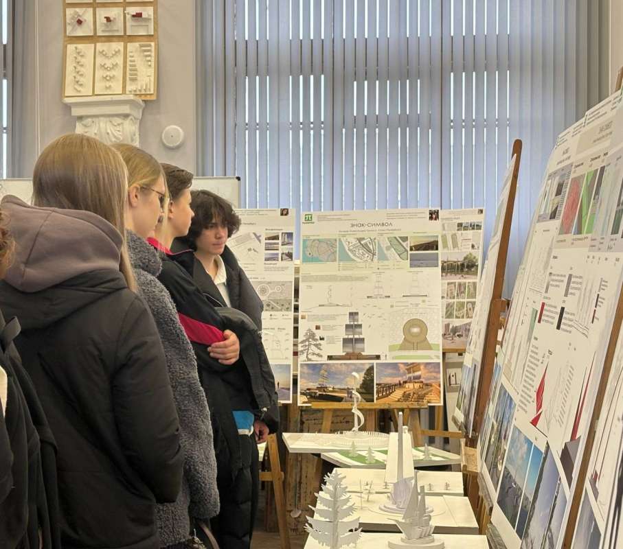 Завершающим этапом экскурсии стало посещение кафедры Высшей школы дизайна и архитектуры, где школьники смогли ознакомиться с выставкой курсовых и выпускных работ студентов, а также увидеть учебные аудитории.