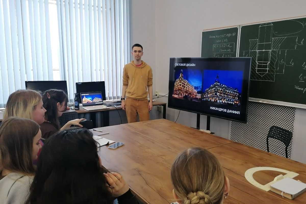 В Высшей школе дизайна и архитектуры Инженерно-строительного института состоялась встреча студентов четвёртого курса направления «Дизайн архитектурной среды» с выпускником ВШДиА ИСИ Даниилом Никандровым. Мероприятие было организовано в рамках дисциплины «Светодизайн», преподавателем которого является доцент ВШДиА Ольга Вуль.