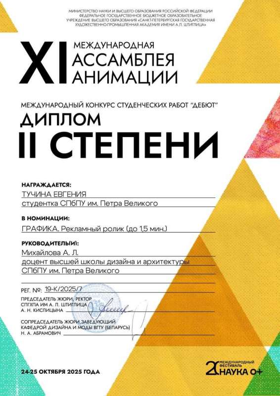 - Евгения Тучина— II место в номинации «Графика. Рекламный ролик (до 1,5 минут)»